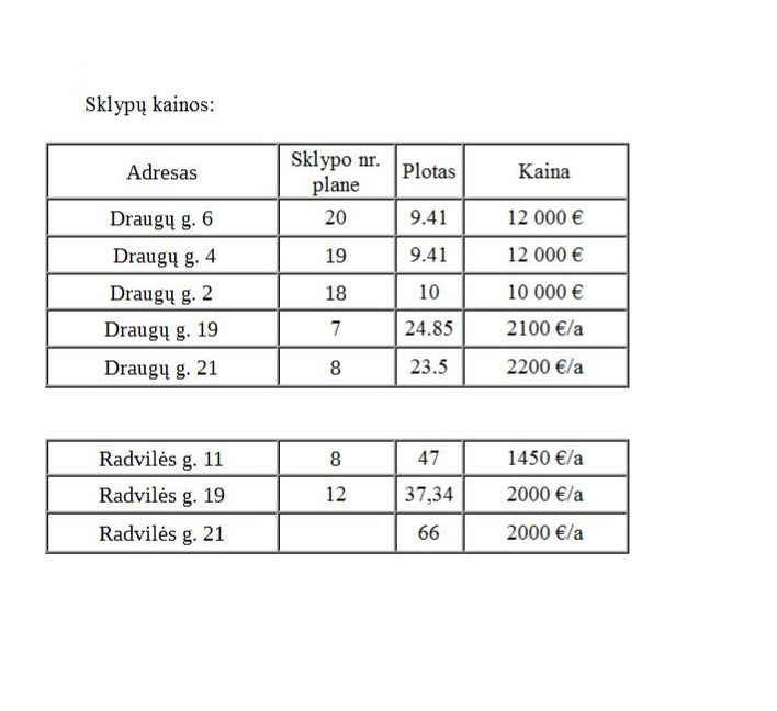 Draugų g. 6 | 20 | 9.41 | 12 000€ |