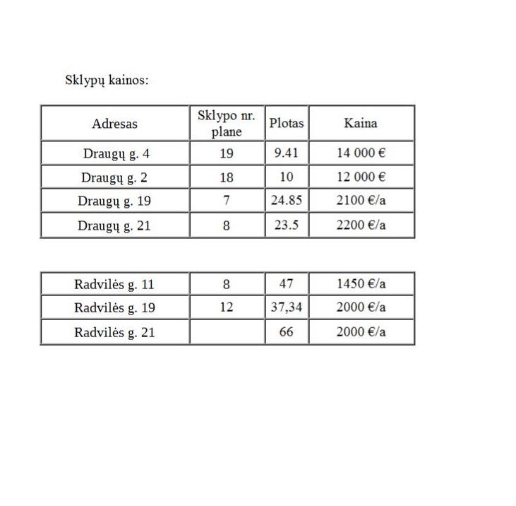 | Draugų g. 21 | 8 | 23.5 | 2200 €/a |